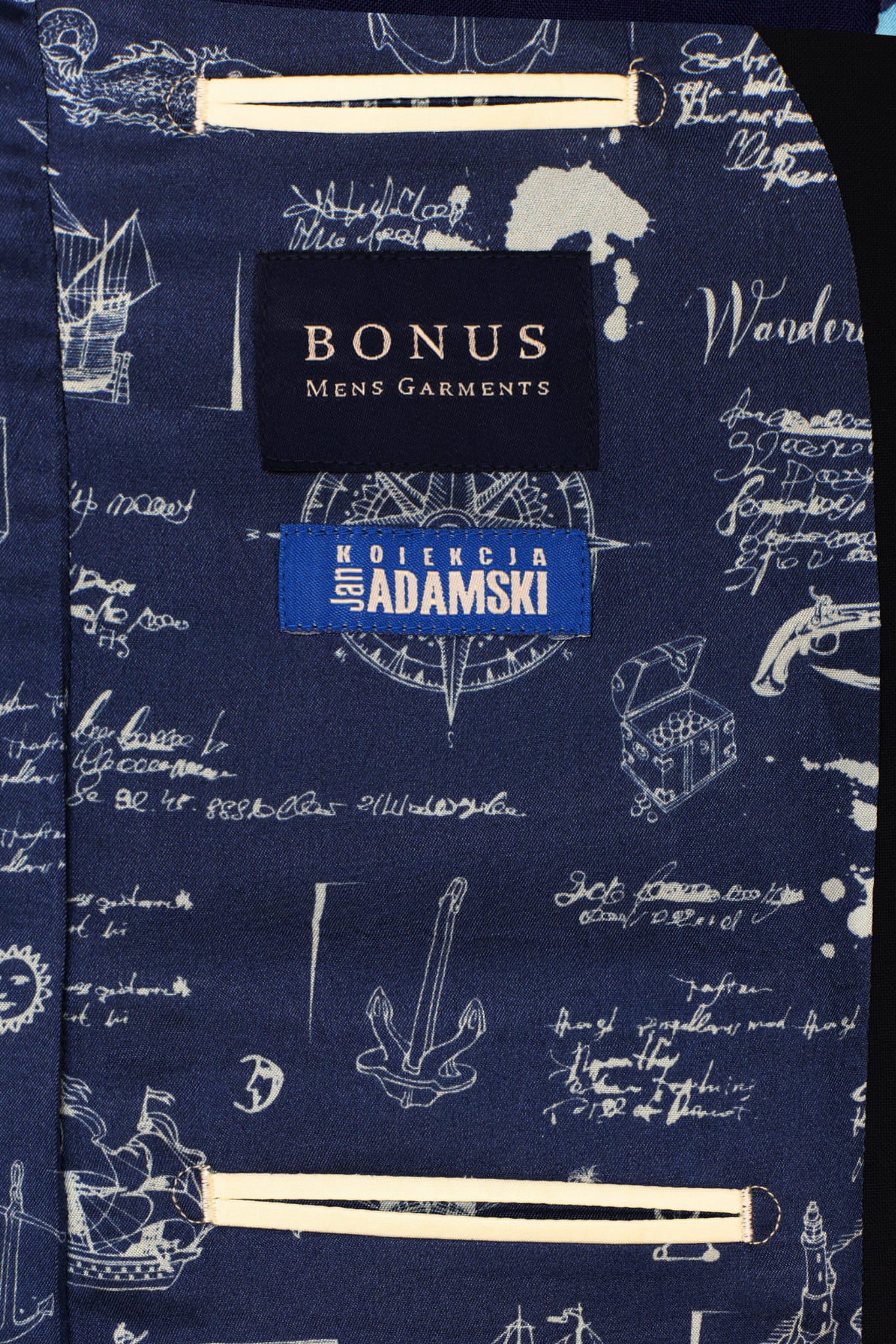 BRUCE jest garniturem, obok którego nie sposób przejść obojętnie. W oczy rzucają się przede wszystkim jego szerokie klapy, znane dotąd tylko z garniturów szytych na miarę u krawca. Uwagę przykuwa kolorowa, wzorzysta podszewka oraz sartorialne detale: brustasza w kształcie łódeczki, guziki z rogu bawolego, szeroka butonierka, w której bez problemu zmieści się łodyżka żywego kwiatka (butonierkę trzeba wtedy rozciąć). Guziki przy rękawach marynarki są rozpinane, ale usytuowane w taki sposób, że umożliwiają ewentualne skrócenie rękawów. Jednak skracanie nie będzie prawdopodobnie potrzebne, gdyż nasze marynarki – w przeciwieństwie do większości marynarek dostępnych na rynku – nie mają za długich rękawów.