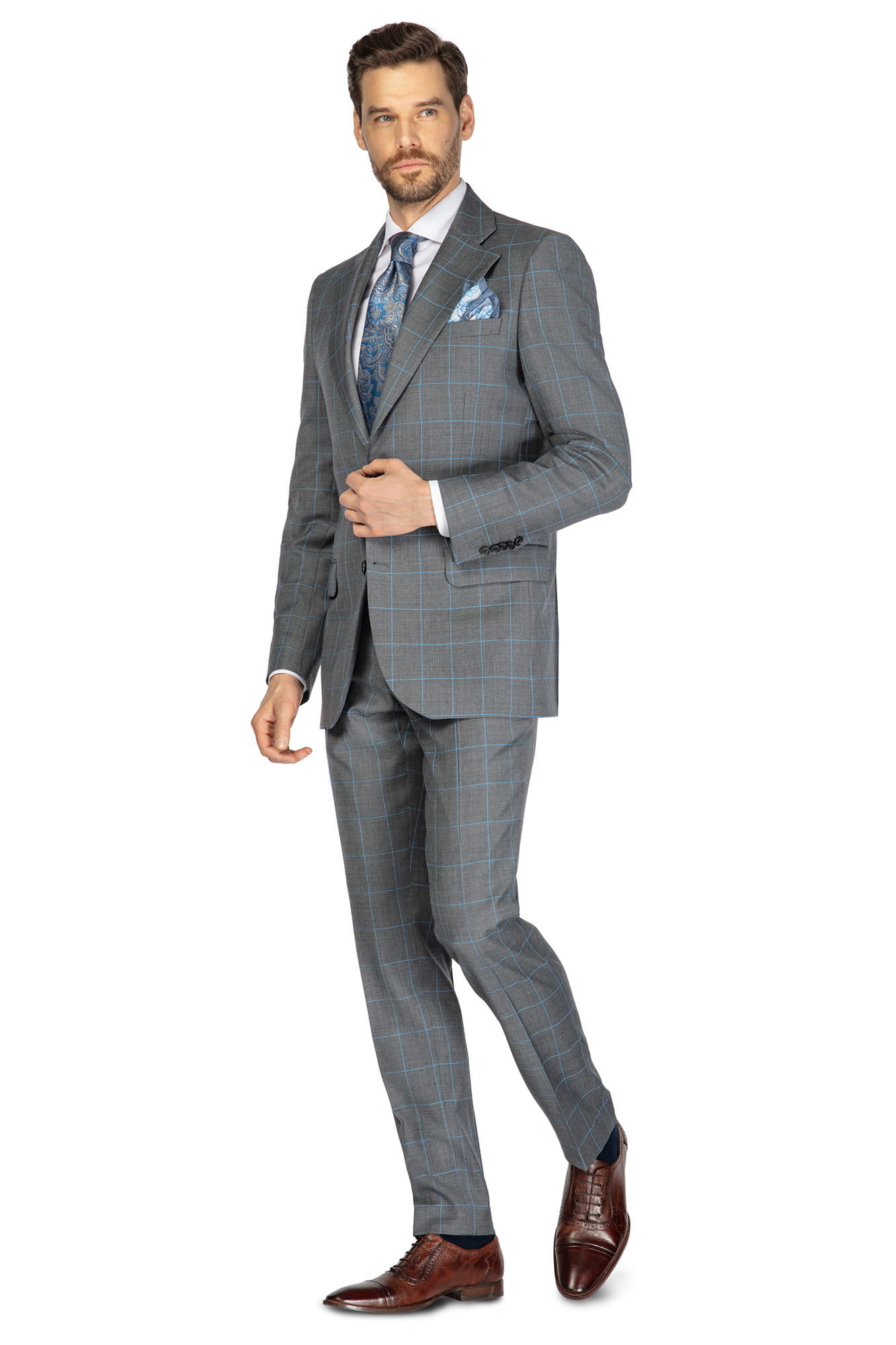 Idealny na formalne okazje, spotkania biznesowe oraz eleganckie wyjścia, ten garnitur podkreśli Twój profesjonalizm i elegancję.