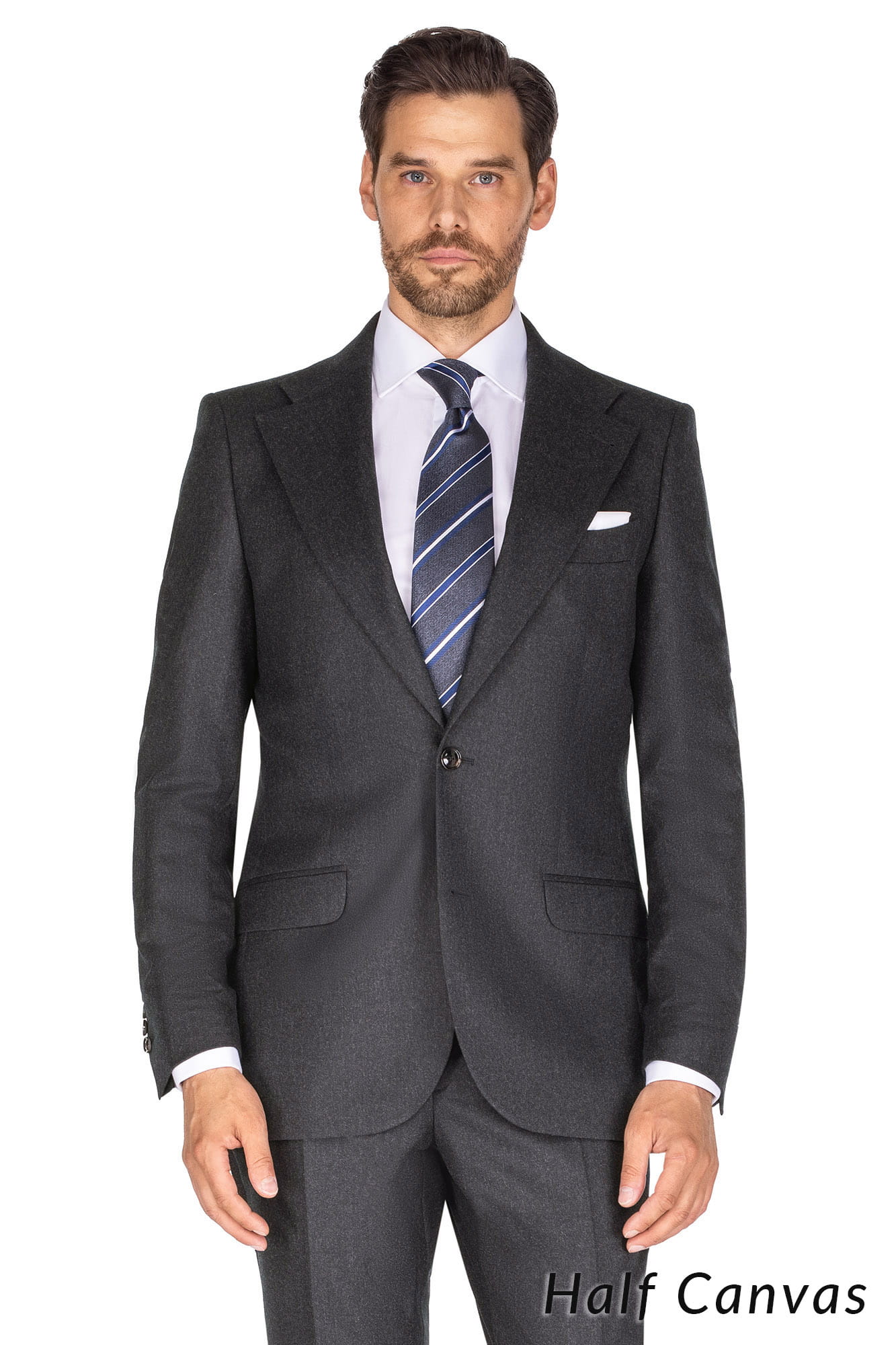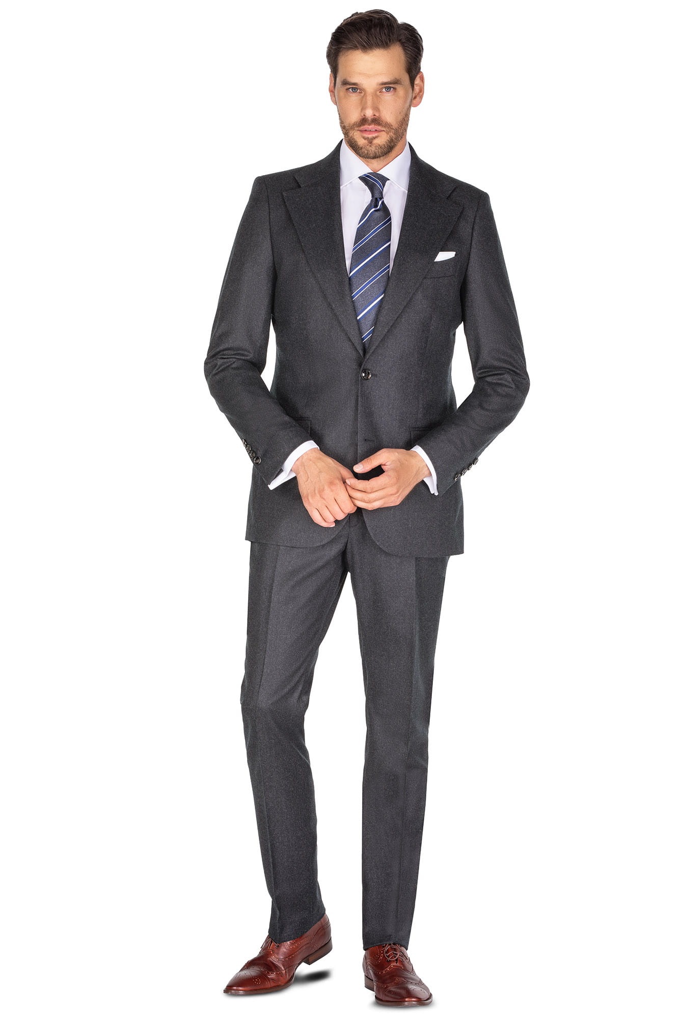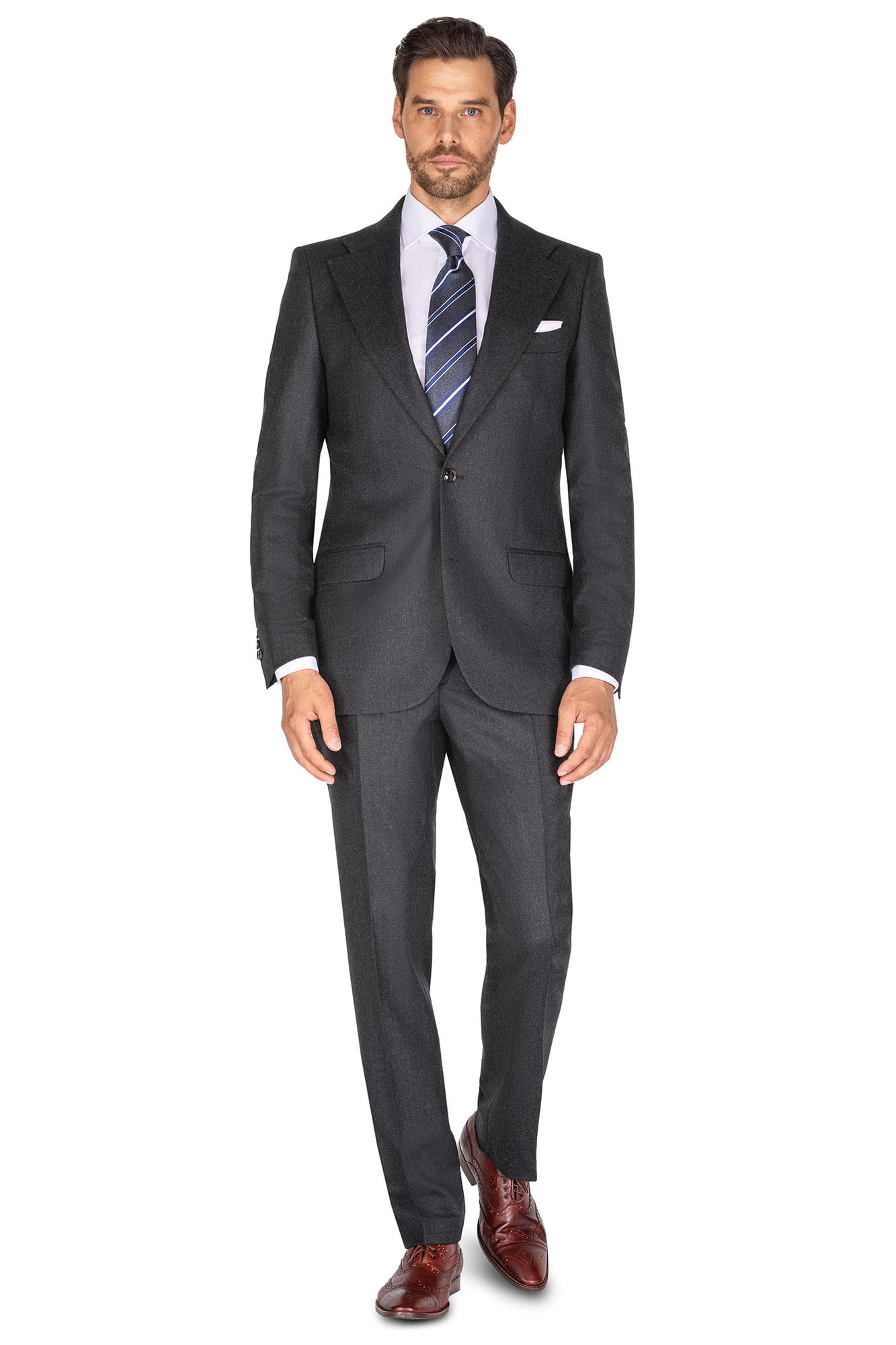 Grafitowy garnitur ANTONIO, wełna 100% - flanela Super 120, Half Canvas