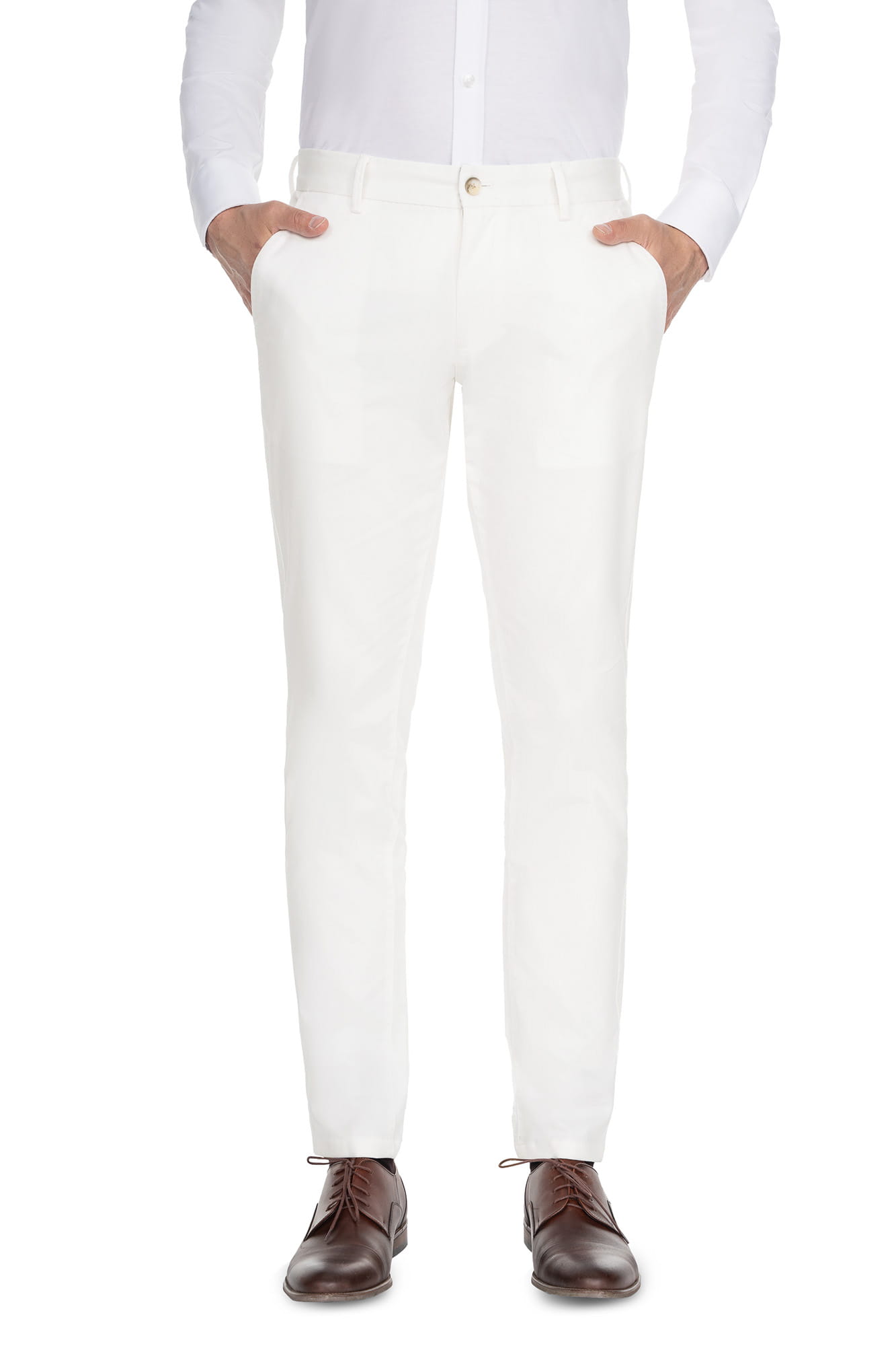 Spodnie CHINO białe, bawełna 97%, elastan 3% - KOD 407